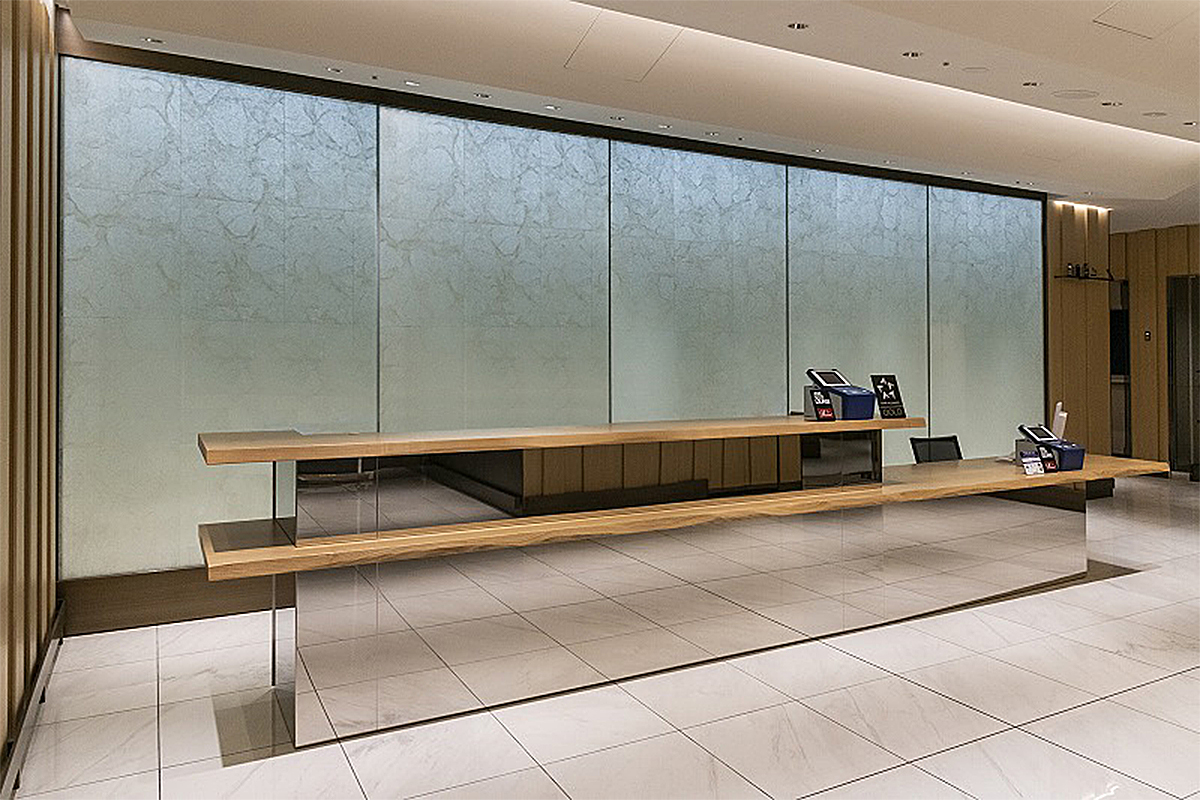 Illuminated Glass Laminated Washi for Office Reception Area Posted on Aug 19, 2016 in Commercial Glass Laminated Backlit Washi for Airport Reception Area